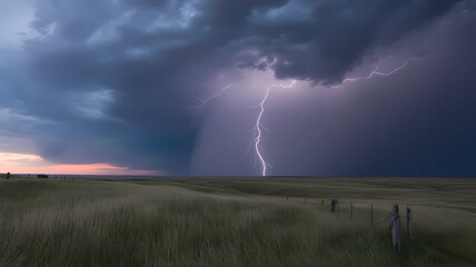 Stormy weather lightning strike over field landscape thunderstorm dramatic sky nature photography scene