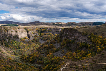 expansive autumn landscape of homolje mountains with dramatic rocky cliffs serbia