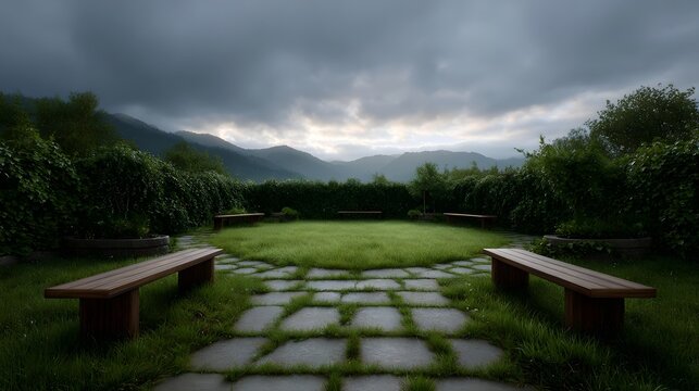 Misty Mountain Valley: A Serene Landscape of Grass, Fog, and Majestic Peaks