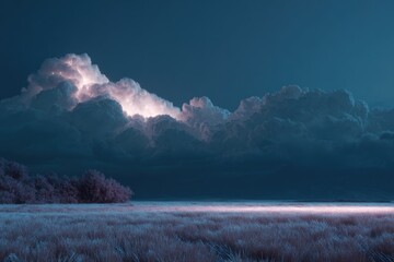 Dramatic Nighttime Thunderstorm With Illuminated Clouds Images