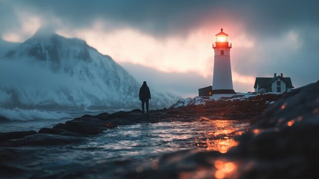 Bearded man amid stormy backdrop with lightning bolts drama