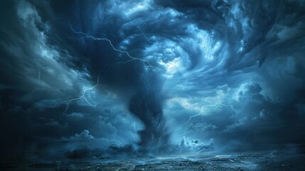 Giant dramatic tornado forming over stormy sky.
