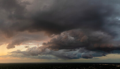 Heavy dark clouds forming hailstorm.