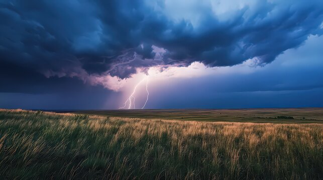 Dramatic Storm Lightning Over Field Dark Clouds Images