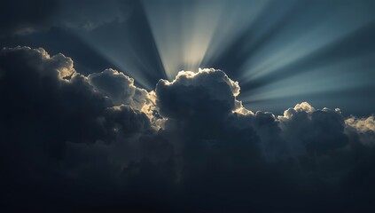 Radiant sunbeams piercing atmospheric cumulus clouds at sunset