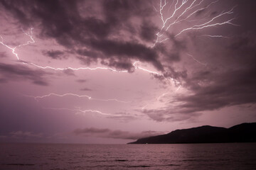 Dramatic horizon of a dark stormy ominous sky over a seascape