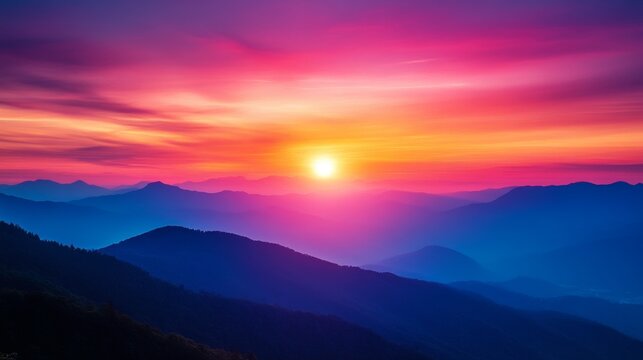 Majestic sunset over a mountain range with vibrant colors in the sky.