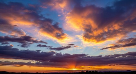 Vibrant sunset sky with pink, blue, and orange clouds over a mountain range.