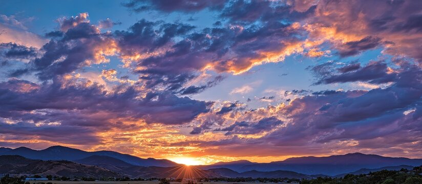 Colorful sunset over mountain range with vibrant clouds