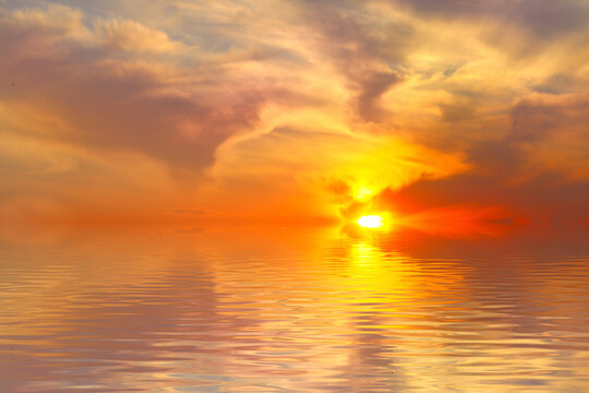 Dramatic sunset over calm ocean
