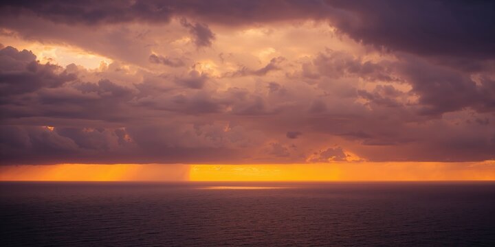 Dramatic Sunset Over Ocean With Sunlight Breaking Through Clouds Images