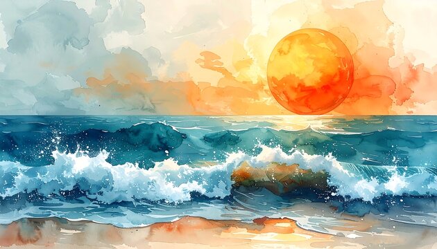 Dramatic Sunset Over Ocean With Waves And Clouds Images