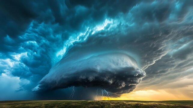 Dramatic thunderstorm with dark clouds and lightning