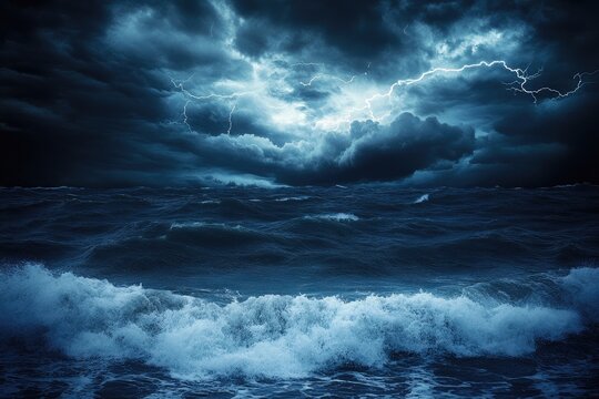 Dramatic lightning bolt striking ocean capturing nature's intensity