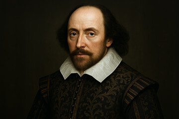 The name of the great poet and playwright William Shakespeare is written in stamped letters in dark blue ink on textured aged paper. Good literature, reading list, favorite authors
