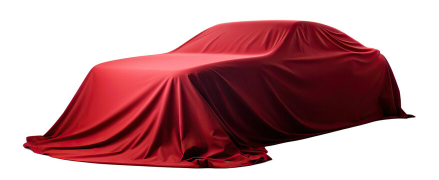 Red fabric draping over an automobile, cut out