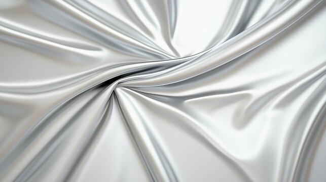 Shimmering silver fabric draping elegantly in soft folds under bright light