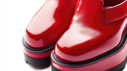 Bright red platform shoes designed for women feature a glossy finish and a modern silhouette, perfect for adding flair to casual or dressy outfits in any season