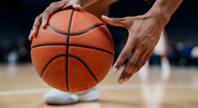 Athlete s hands dribbling basketball with skill and finesse  olympic sport concept