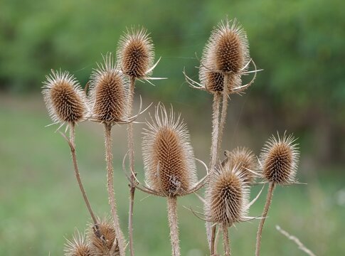 Cluster of spiky dried thistle heads