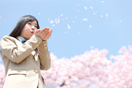 Gentle pink cherry blossoms full bloom with petals drifting in the spring breeze beautifully illustrated in watercolor style