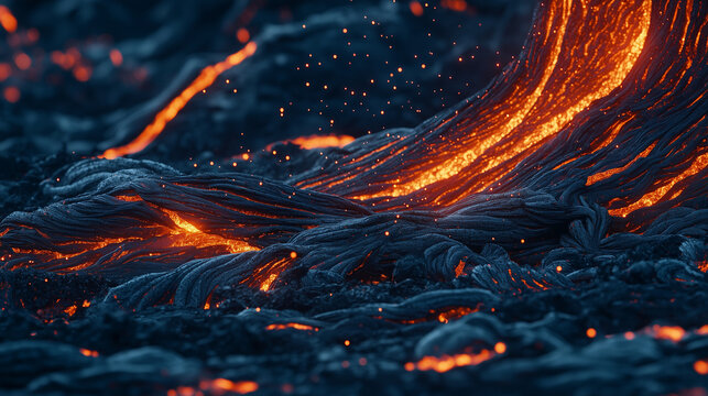 Fiery red sparks soar from a massive eruption in the dark sky. Stunning abstract visuals reflecting fire, light, and vitality. Glowing orange particles drifting against a black backdrop in 4k.