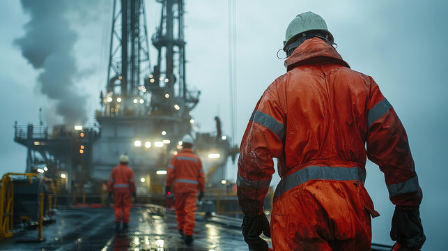 Petroleum Industry: Sunset at Offshore Production Platform with Crude Oil Exploration