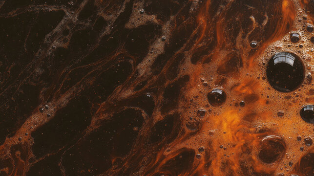 Elegant and textured close-up of sarsaparilla liquid with bubbles for design