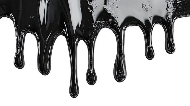 Paint dripping. Black dripping ink. Dripping liquid. Current paint, stains. Flowing liquid on transparent background