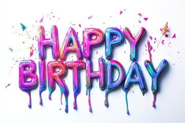 Colorful dripping happy birthday letters with streamers and confetti