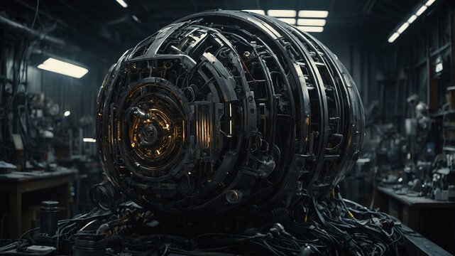 in the dimlylit workshop a quirky droid mecha image