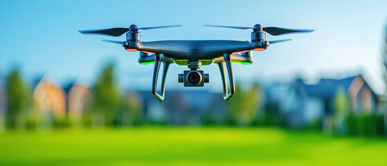 Close-up drone hovering captures modern aviation tech