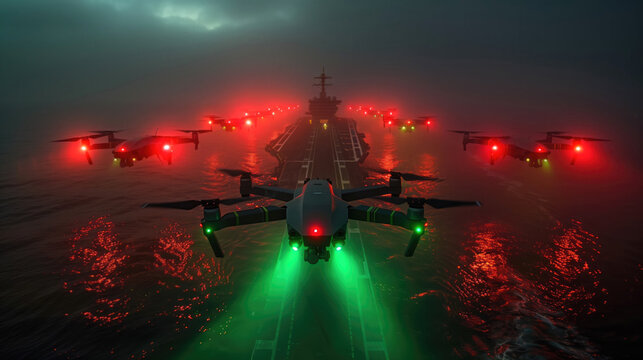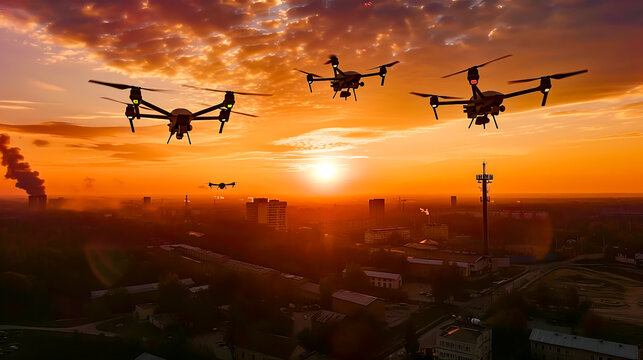 Military Drone Swarm Operation at Sunset