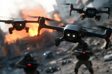 Drone technology overlapping ukraine crisis imagery