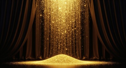 Golden Cascade Shimmering Stage with Luxurious Curtain Backdrop.