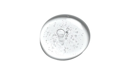 A clear gel drop with tiny bubbles, isolated on a stark black background