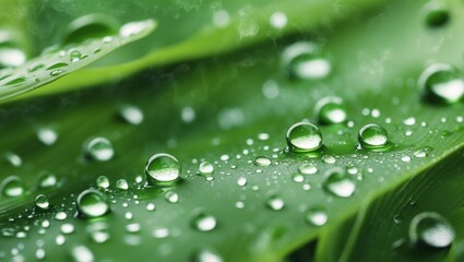 Glittering water droplet resting on green leaf vein with sunlike sparkle and prism