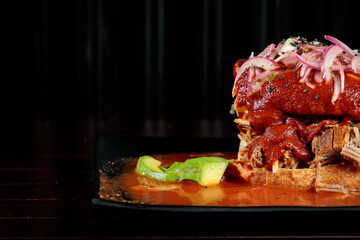 Pork meat drowned cake in red spicy sauce Torta Ahogada