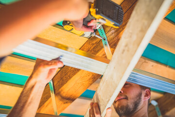 Robotic vacuum cleaner on laminate wood floor charging from base station. Smart cleaning technology. robot vacuum cleaner return to charging at dock in clean room floor