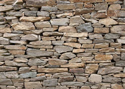 Weathered stone wall close-up showing cracked mortar, pebbled eroded texture