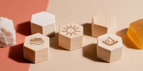 Minimalistic simple mock up background with a podium pedestal for products, soft orange apricot color.