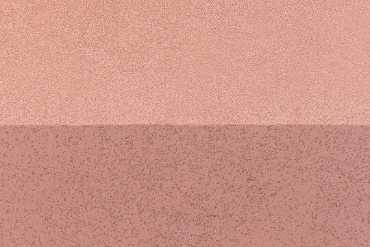 Closeup of the wall with a decorative plaster vertical lines and stripes. Trendy dual tone background texture. Textured turquoise and pink concrete wall. Pastel color, design concept.
