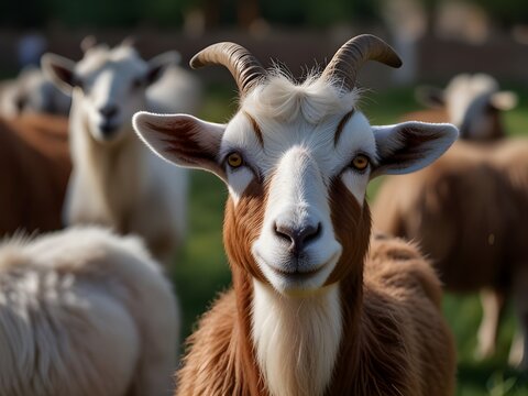 Close up of Indian sheep or Ram breed sheep or Awassi breed sheep in the fields.