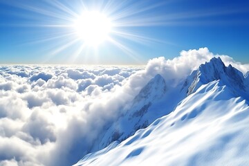 beautiful winter landscape of Dumba mountains higher than clouds, close up, top view