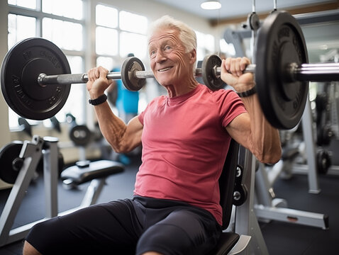Retired Athlete Exercising with Barbell in a Gym