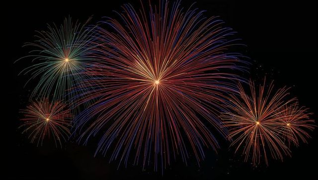 Bursting multicolor firework spectacular over dark night sky for holiday celebrations