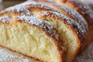 Sliced sweet loaf with sugar dusting on board for Day of the Dead food element image
