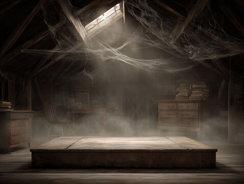 Abandoned attic with cobwebs and vintage charm