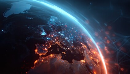 Futuristic 3d digital globe with dynamic data nodes and lines