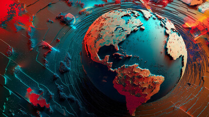 Digital Globe Futuristic Network Analysis in Cyberpunk Style